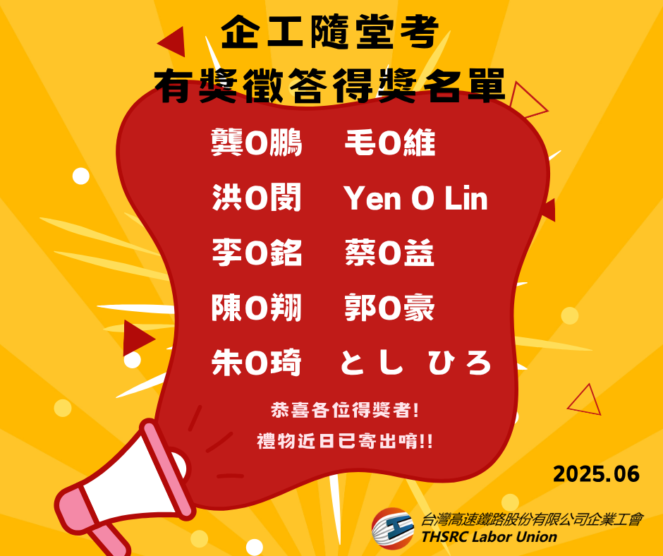 2025-06-13❗️❗️❗️ 企工隨堂考有獎徵答-得獎名單❗️❗️❗️